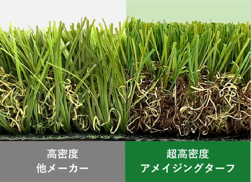 高密度だから、芝が倒れにくくてキレイが長持ち!